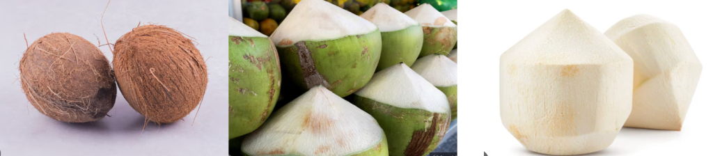 This coconut is completely peeled to reveal the clean white shell, providing a visually appealing, ready-to-serve product suitable for supermarkets, cafés, hotels, and juice outlets.